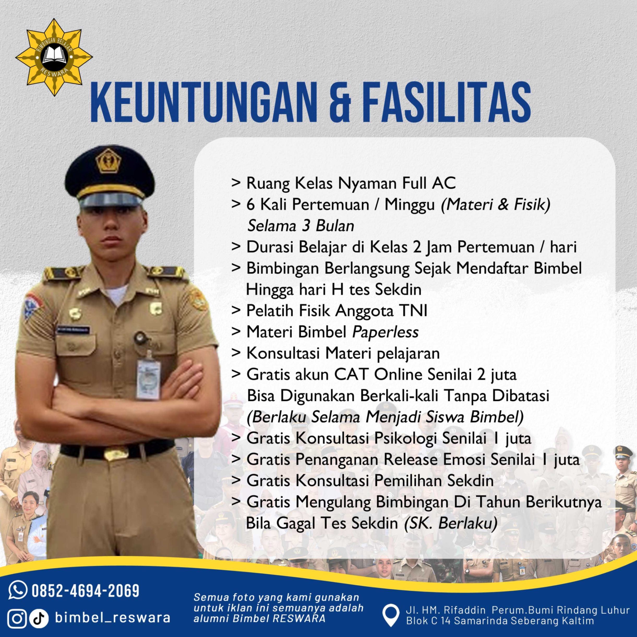 di kota Samarinda Kalimantan Timur, dan sudah berhasil mangantarkan ratusan siswa lulus tes sekolah kedinasan, TNI/POLRI