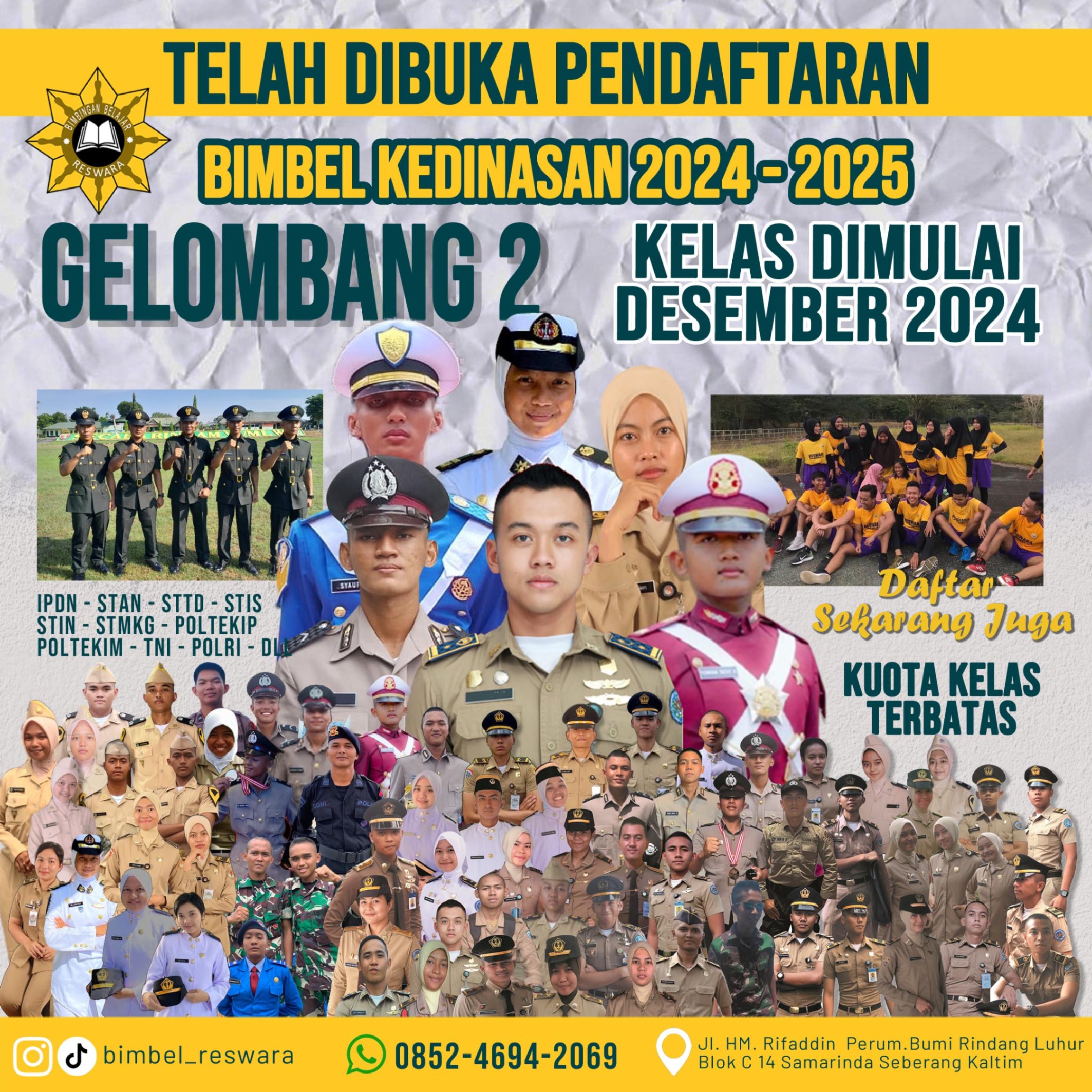 Bimbel Reswara adalah bimbel khusus persiapan sekolah kedinasan TNI/POLRI yang sudah berdiri sejak tahun 2015