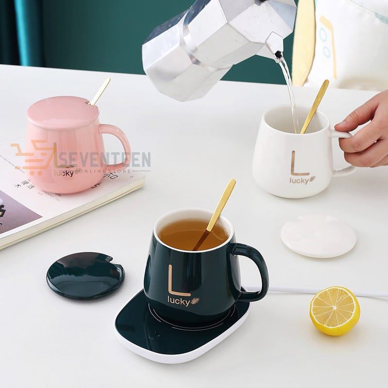 Gelas set keramik / Mug Cangkir Gelas Listrik Pamanas Penghangat Minuman Kopi Susu Cup Coffee Warmer Elektrick Keramik