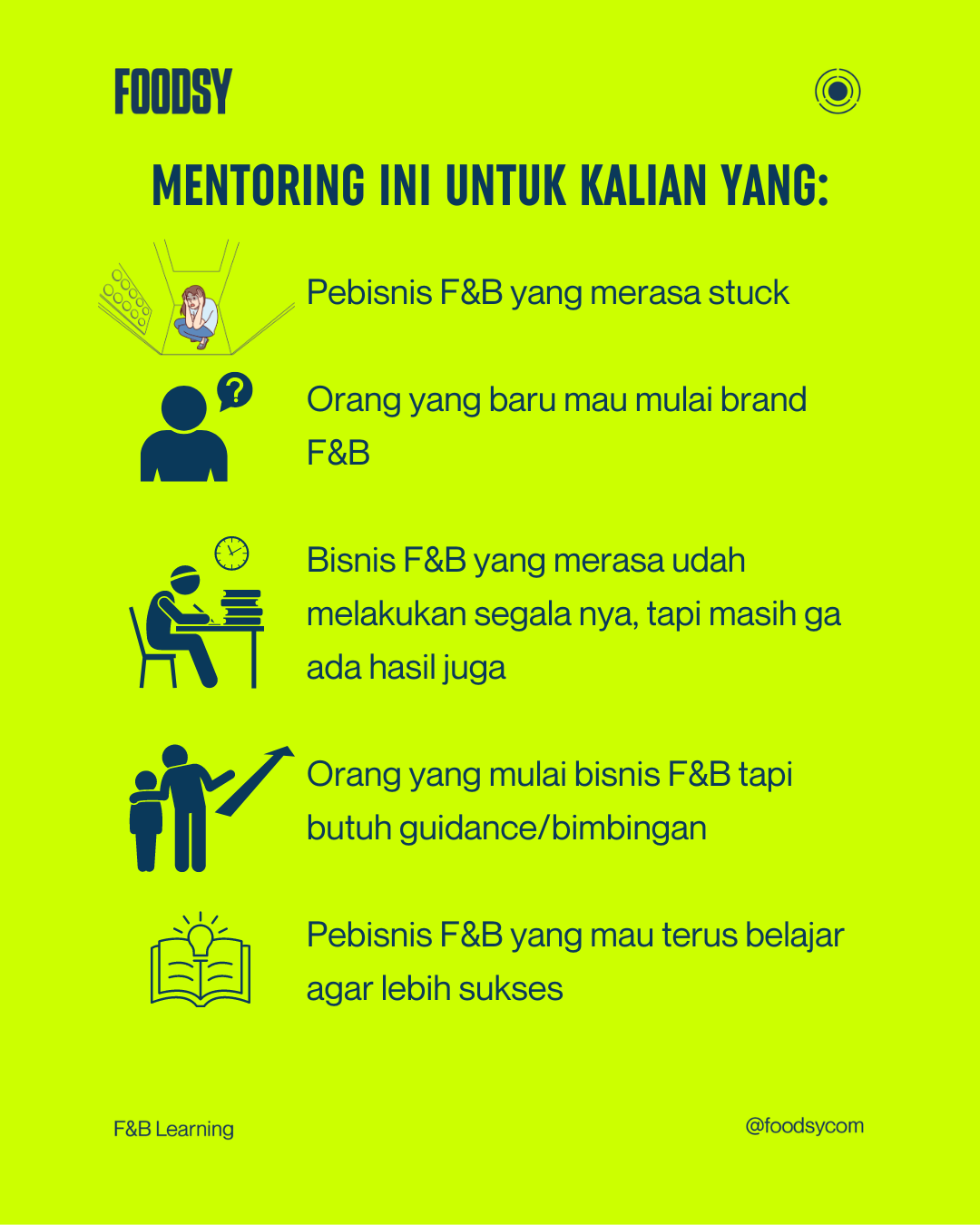 Selama 10 tahun waktu perjalanan saya sebagai F&B entreprenuer, saya kesulitan menemukan mentor, ga usah mentor, pusat informasi tentang bisnis F&B aja sulit di cari.