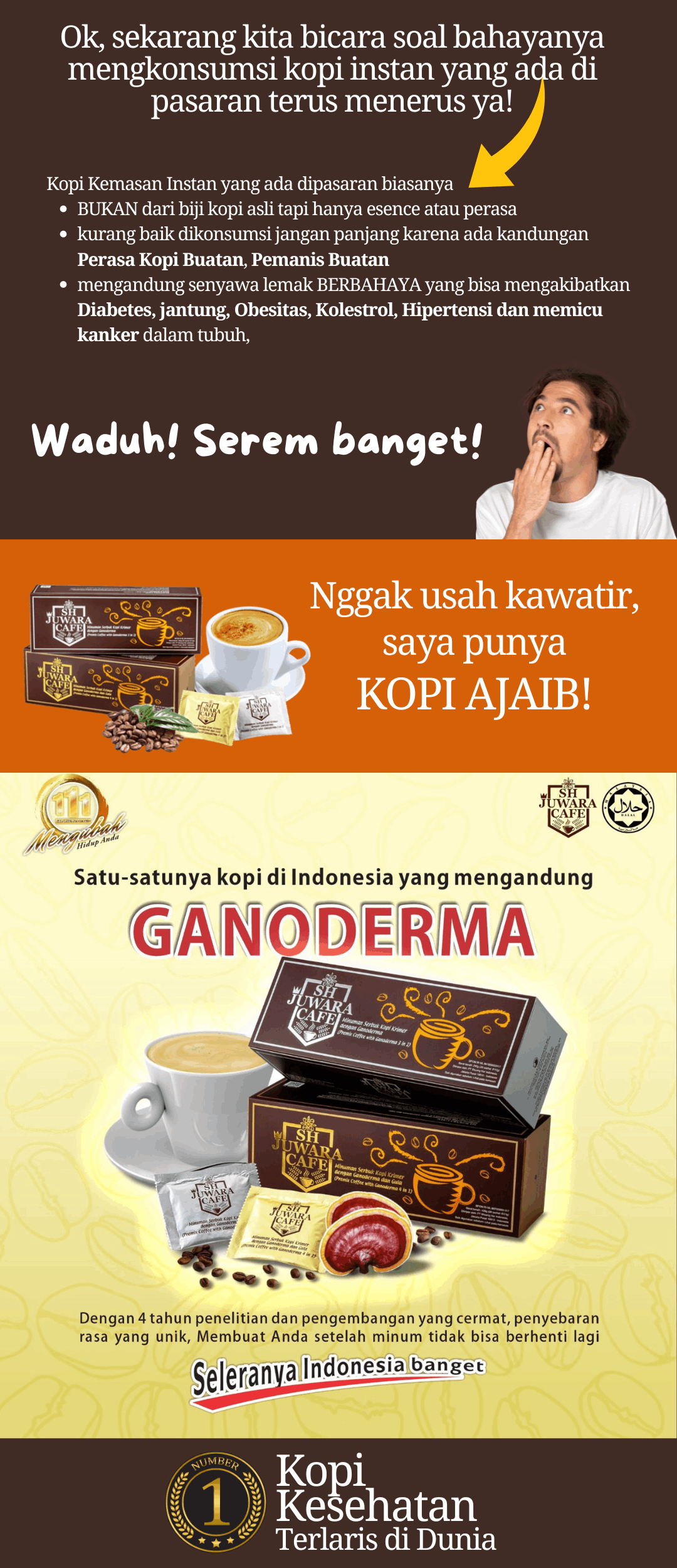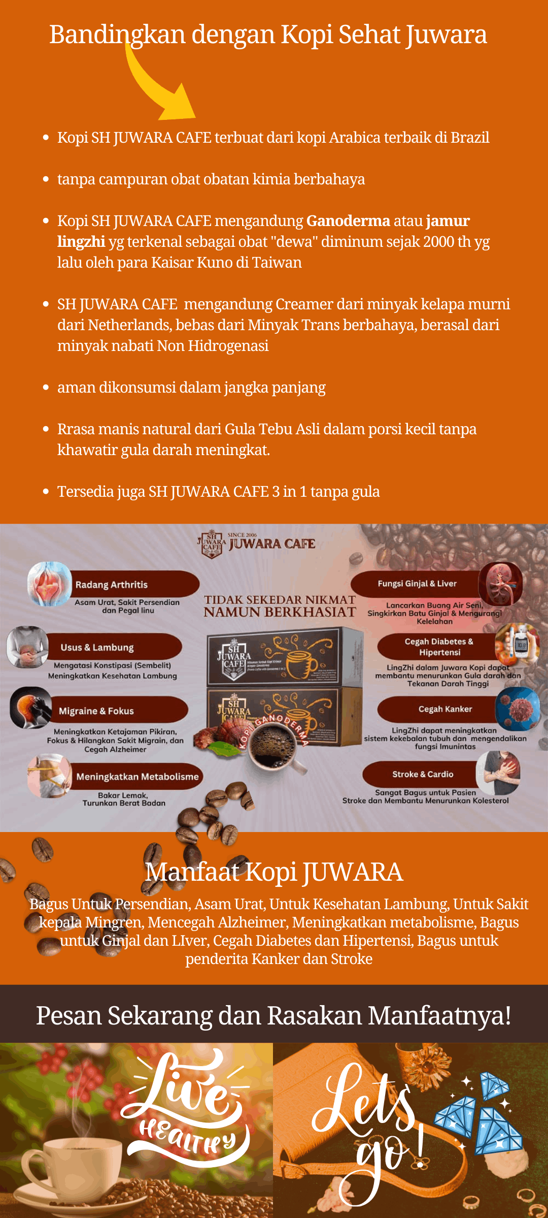 Kopi JUWARA ini diteliti dan di riset selama kurang lebih 4 tahun oleh para ahli dan ilmuan di Taiwan untuk dipastikan Produk ini aman dan bermanfaat untuk Kesehatan masyarakat di seluruh Dunia, Sehingga jangan heran banyak kesaksian tentang Kopi JUWARA / CEO Kopi.