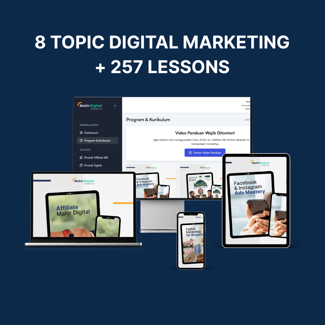 Mahir Digital adalah platform edukasi untuk bantu Kamu mulai belajar Digital Marketing DARI NOL (PEMULA), sampai bisa PRAKTEK & MENDAPATKAN PENGHASILAN, hanya dari rumah.