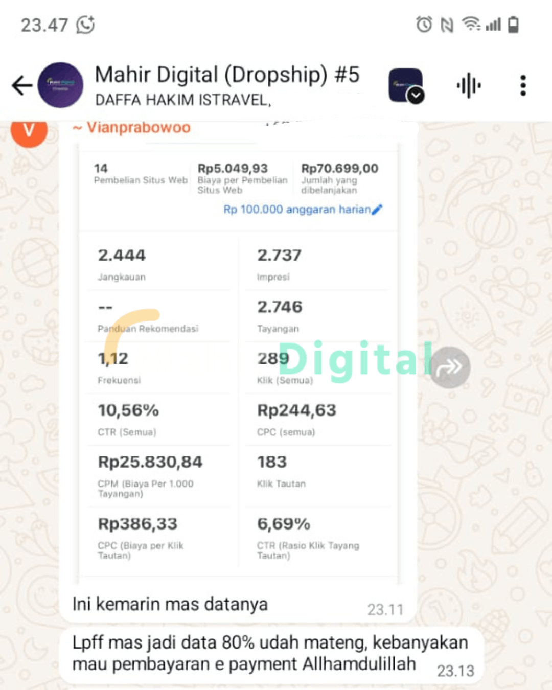 Real praktisi, sudah TRIAL & ERROR selama 9 tahun + berhasil menaikan budget iklan dari modal 100 ribu/ hari, sampai akumulasi 5 Milyar.