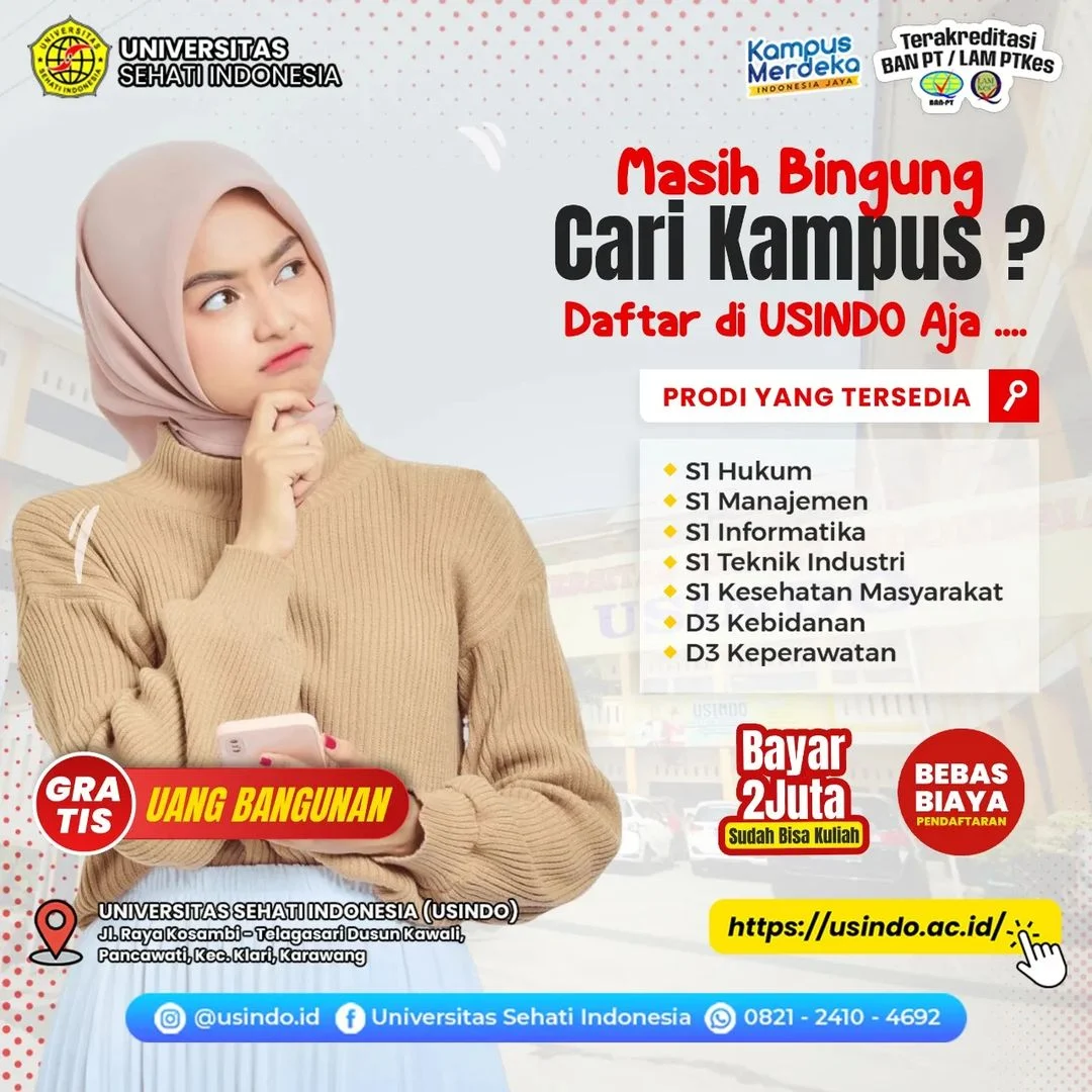 Apakah Anda siap untuk mengambil langkah besar menuju masa depan cerah? Pendaftaran mahasiswa baru USINDO untuk Tahun Akademik 2024-2025 sudah dibuka! Jangan lewatkan kesempatan untuk bergabung dengan salah satu universitas terkemuka di Karawang.