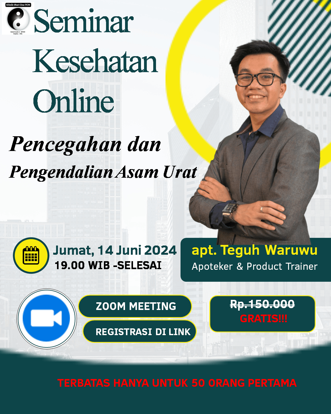 Kita cari tahu sama-sama yuk tentang masalah Asam Urat Sejak Dini Bersama Seorang Apoteker dan Trainer Mr.Teguh Waruwu di Zoom Meeting