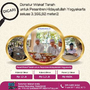 Wakaf Pengembangan Pesantren Hidayatullah Yogyakarta Kampanye wakaf ini bertujuan untuk mendukung pengembangan Pesantren Hidayatullah Yogyakarta yang dikelola oleh Lembaga Yayasan As-Sakinah Yogyakarta. Mari bersama-sama wujudkan pesantren yang lebih baik untuk masa depan yang lebih cerah!
