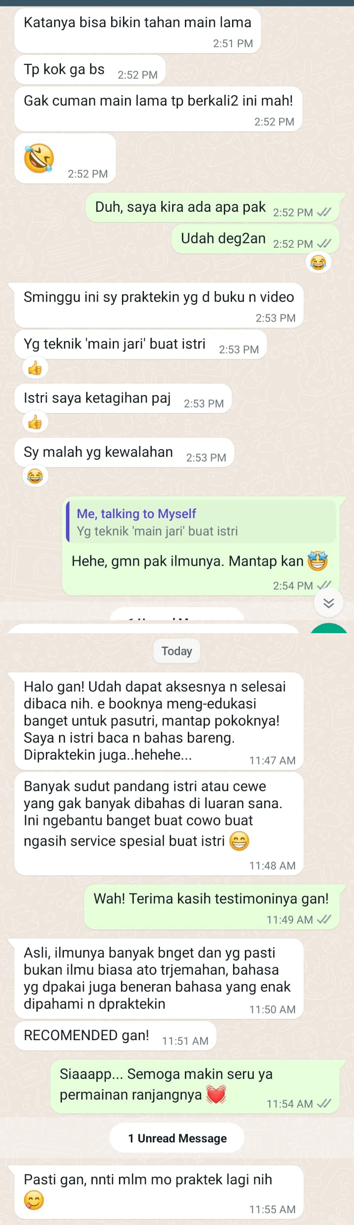 Tapi, Anda tidak perlu khawatir, Anda tidak sendiri merasakan hal itu. Saya juga pernah merasakan hal yang sama dengan Anda. Saya tidak menyerah dengan keadaan. Puluhan suplemen dan konsultasi kepada psikolog dan seksolog sudah saya lakukan. Dan saya sudah menemukan BENANG MERAH dari semua permasalahan yang Anda dan saya pernah hadapi. Puluhan juta rupiah dan waktu berminggu-minggu telah saya habiskan untuk mendapatkan benang merah ini.